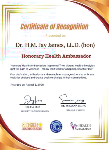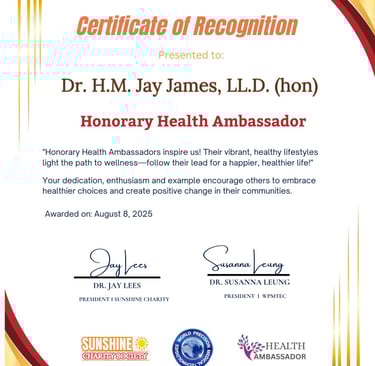 Dr. H.M. Jay James, LL.D. (hon) Honorary Health Ambassador